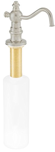 This Victorian finial soap or lotion dispenser firmly mounts in sink or counter. The 3-1/2 in. high dispenser extends a full 4 in. into the sink. The solid brass dispenser head, easily fills from the top of the unit and comes with an ample 12 oz. reservoir. The extended shaft height mounts in thicker countertops.