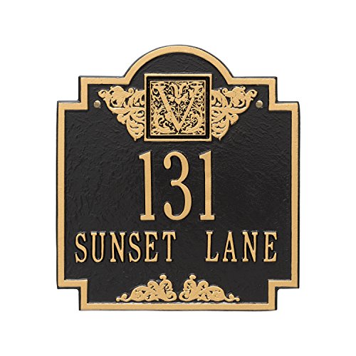 正方形モノグラム標準壁複線アドレスPlaque – ブラック/ゴールド