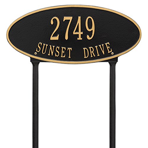 Whitehall製品Madison楕円形標準Lawn複線アドレスPlaque – ブラック/ゴールド