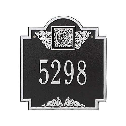 Whitehall製品正方形ブラック/シルバーモノグラム標準壁1行アドレスPlaque