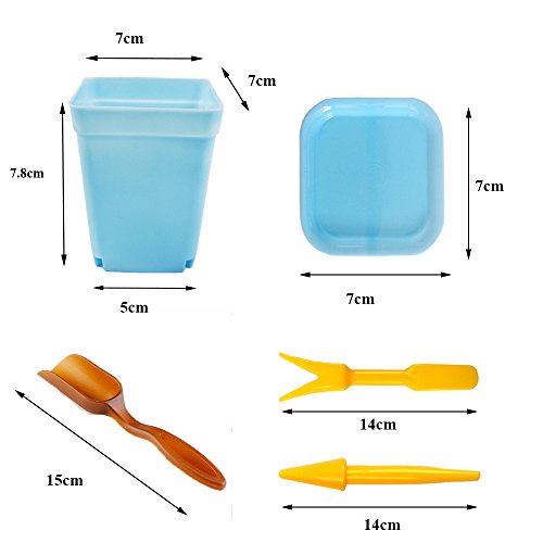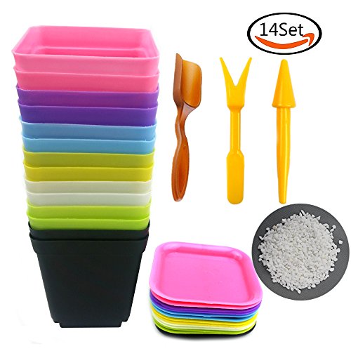 - パッケージ内容:14個受皿付き植木鉢、7色(白色、緑色、紫色、青色、ピンク、黄色、黒色)、1袋4-7mmの白い化粧砂利80g、スコップ×1個、移植ツール×2個