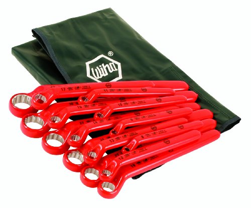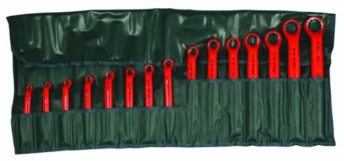 Wiha 21093 Insulated Metric Deep Offset Angled 15 Degree Ring Wrench Set, 8mm - 32mm, 15 Piece in Rolled Up Pouch by Wiha