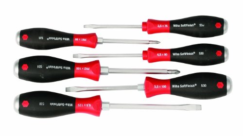 Wiha 53096 Soft Finish Heavy Duty Screwdriver Set, Slotted/Phillips, 6-Piece by Wiha