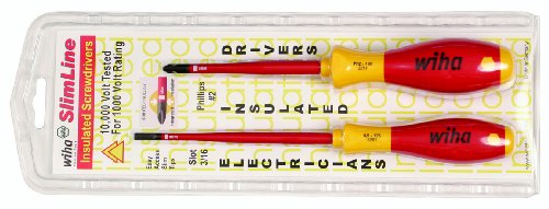 Wiha 32189 Insulated Screwdrivers Slim No.2 and 4.5, 2-Piece Set by Wiha