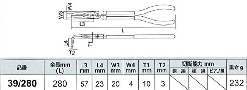 Will ロングノーズプライヤー 曲がり90度 39/280