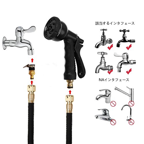 - 2016最新改良版モデル、破損や破裂は難しくなり、磨耗と高圧への耐久性が高い。熱や耐久性に強い、強化ゴムを採用した伸びるホース 。