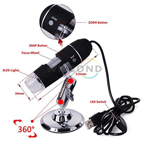 Wiysond 800倍 USB デジタル 顕微鏡 ポータブル 8 LED 40 - 800X2MP 内視鏡 拡大鏡 カメラ