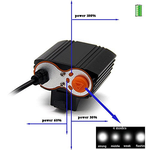 - 高輝度白色LED×2個; Cree XML U2 LED,10万時間の使用寿命 超高輝度ライト,明るさ: Max,5000ルーメン.