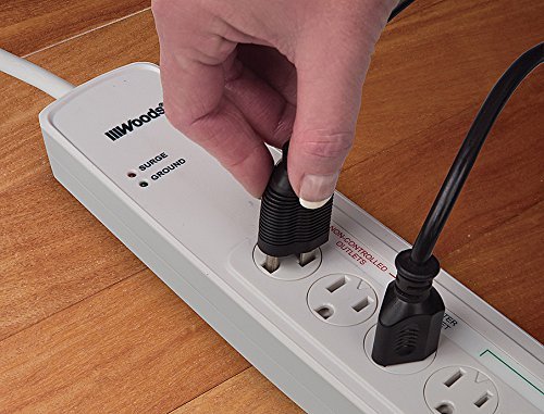 $100,000 Equipment Protection Warranty. The WOODS 041707 Electronics 7-Outlet Surge Protector saves energy and money! Energy Saving strips help eliminate wasted energy known as phantom power by automatically turning off peripheral devices when not in use. Reducing phantom power can save you as much as 15% on your energy bills. This item features 2700-joules of surge protection, (4) ENERGY SAVING outlets to automatically turn off peripheral devices such as a DVD player or printer, (2) NON-CONTROLLED outlets for devices you always want powered on such as a satellite receiver or cordless phone and (1) MASTER outlet for the main controlling device such as a television or computer. This item protects household electronics from surges, spikes and other electrical imbalances that can occur on your home power line. The red surge protection LED indicator illuminates to show the unit is working properly and that your connected equipment is surge protected. The surge protector has (7) grounded 4-pronged outlets, a 6-foot power cord and a right angle plug that allows you to move furniture closer to the wall. Each outlet is equipped with a rotatable safety cover to protect children from unintentional shock. The EMI/RFI noise filter allows clean power to enter your equipment and reduces harmful EMI and RFI noise that may cause unexpected data loss and unintended signal infiltration. The Woods 041707 Energy Saving Electronics 7-Outlet 2700-Joule Surge Protector comes with a 100,000-dollar connected equipment warranty that provides the peace of mind knowing your valuable electronics are covered. Coleman Cable, Inc. offers a family of leading brands such as Moonrays, Fire Shield and Woods. Woods has been a leading developer of electrical products for consumers and professional contractors. With years of experience, Woods Industries collaborates with their customers to deliver quality products to retail.