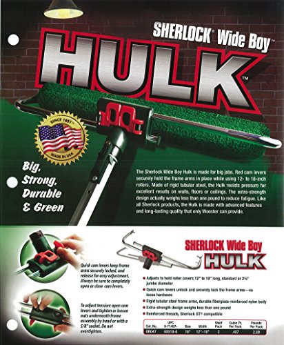 18" roller frame. The Wide Boy adjusts to hold Wooster roller covers 12" to 18" long, both 1-1/2" standard and 2-1/4" jumbo diameter. Their rigid tubular steel frame resists pressure for excellent results on floors, walls, or ceilings. To reduce fatigue, its extra-strength design weighs less than 1 lb. - 60% less than comparable frames. Includes a handle adapter for the Sherlock GT poles to match specific job requirements. Size: 18", Type: Sherlock Wide Boy, Handle Type: Threaded, Pkg Qty: 1 ---- 1. 海外直輸入品となりますので、新品であっても、パッケージに多少のダメージがある場合もございますが、商品本体には問題ございませんのでご安心ください。2. 日本国内でのメーカーによる製品保証等は適用されません。3. パッケージや、説明書等は、英語表記となります。