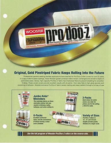 Use with any of the Jumbo-Koter cage frames. Designed for superior performance, the pro/doo-z roller cover is made of a proprietary high-density fabric, perfect for applying all paints, enamels, primers, and adhesives. The cover features a golden pinstripe, which stays resilient, while resisting matting. The roller’s interlocking fibers are shed resistant, resulting in a smooth, even finish.