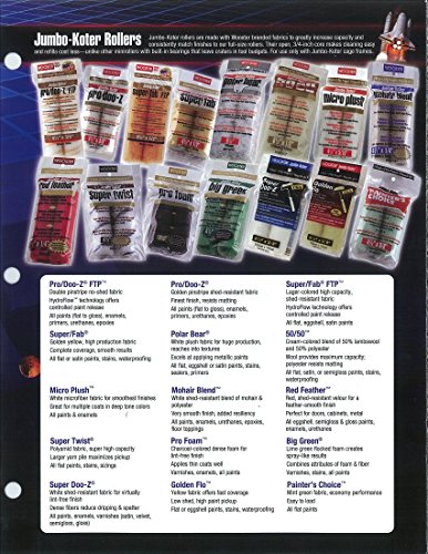 Use with any of the Jumbo-Koter cage frames. Jumbo-Kotler rollers are made with Wooster branded fabrics to greatly increase capacity and consistently match finishes to our full-size rollers. Their open, 3/4" core makes cleaning easy and refills cost less. Trilingual, color-coded bags have headers for better merchandising. For use only with Jumbo-Kotler cage frames. The Wooster Brush Company has been manufacturing innovative, high-performance painting tools right out of Wooster, Ohio USA since 1851. Our trade names include Ultra/Pro, Advantage, Yachtsman, Shortcut paintbrushes; Super/Fab, Super Doo-Z roller covers; Sherlock frames and extension poles; Jumbo-Kotler minirollers; and Prep Crew surface prep tools. You can feel confident knowing Wooster is the name behind your painting tools.