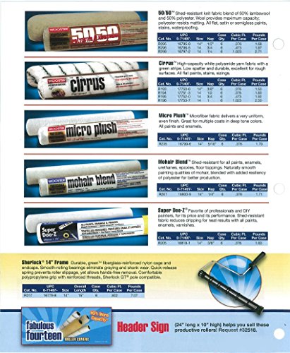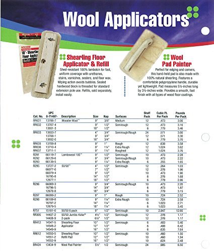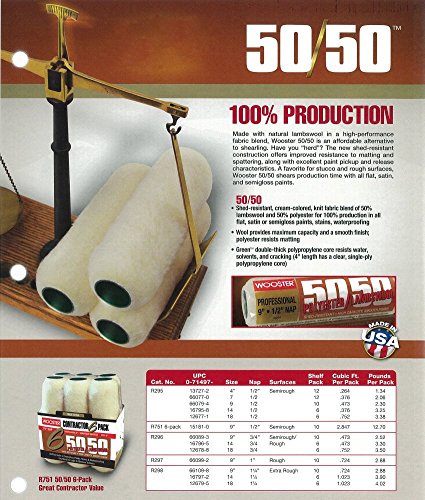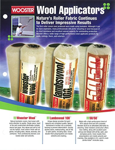Shed-resistant, cream-colored, knit fabric blend of 50% lambswool and 50% polyester for 100% performance in all flat, satin or semigloss paints, stains, waterproofing. Wool provides maximum paint capacity and a smooth finish; polyester resists matting. Gr