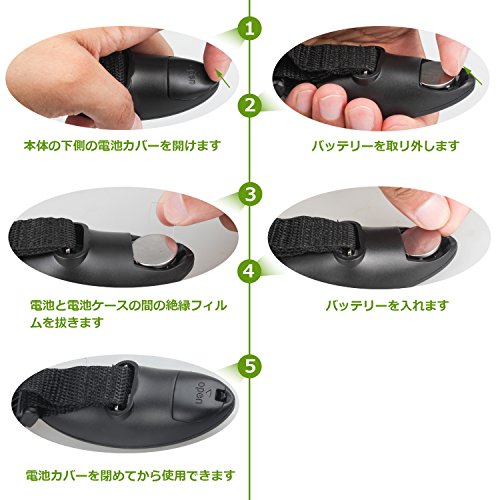 1.バッテリーカバーを開けて、ボタン電池を装着します。