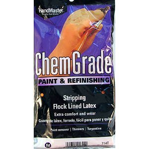 Flock Lined Stripping Latex Glove.;For Paint Or Varnish Remover, Paint Thinners, Turpentine & Polyurethane.;Size - Medium.;Color - Orange.;Dimension - 13 x 5 x 1 in.