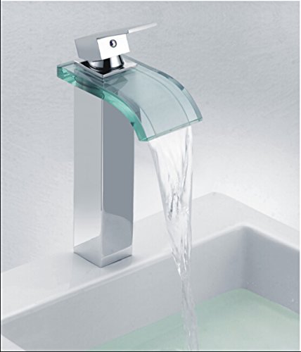 Wovier ガラス製の吐水口 水栓 ワンホール キッチン用 台付 黄銅 シングルレバー混合水栓 洗面 取り替え水栓蛇口 洗濯 蛇口 50cmホース*2付き