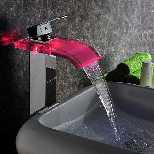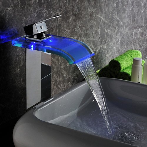 Wovier LED ガラス製の吐水口 水栓 ワンホール キッチン用 台付 黄銅 シングルレバー混合水栓 洗面 取り替え水栓蛇口 洗濯 蛇口 50cmホース*2付き