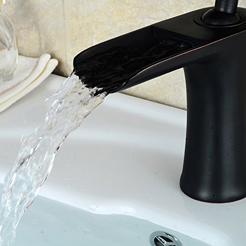 Wovierクロム/つや消しニッケル/ Oil Rubbed Bronzeウォーターフォール浴室排水溝シンク蛇口、シングルハンドル単穴洗面所蛇口、ミキサータップ ORB83692