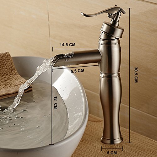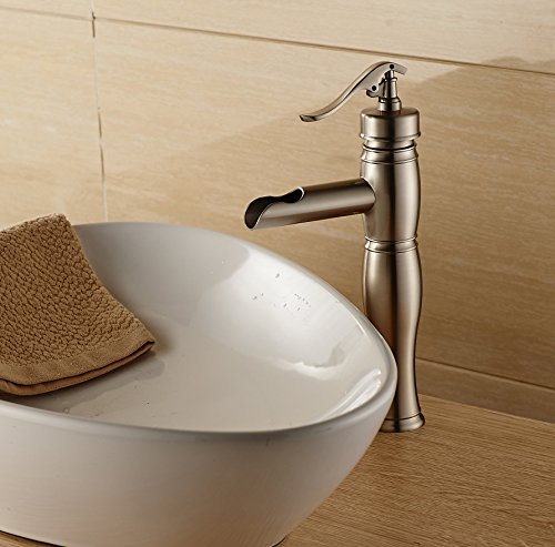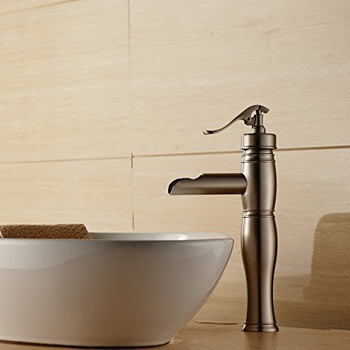 Wovierつや消しニッケル/ Oil Rubbed Bronzeウォーターフォール浴室シンク蛇口、シングルハンドル単穴洗面所蛇口、ミキサータップBasinトールボディ 82871