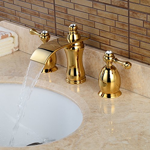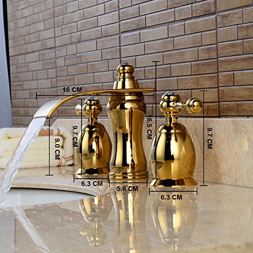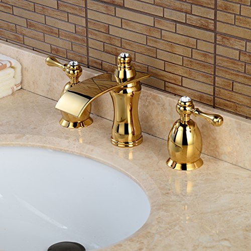 Wovierクロム/つや消しニッケル/ Oil Rubbed Bronzeウォーターフォール浴室シンク蛇口、2つハンドル3つ穴洗面所蛇口、Widespread Basinミキサータップ TP84134