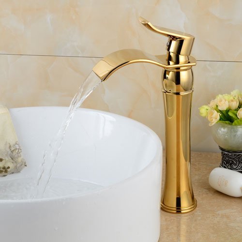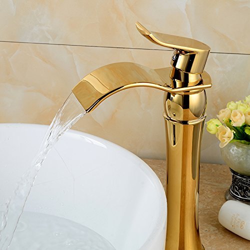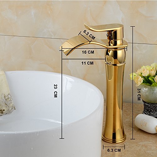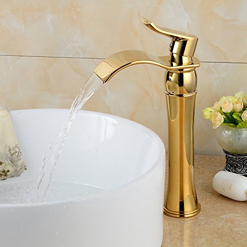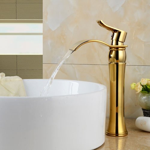 Wovier Gold(ti-pvd) Waterfall Bathroom Sink Faucet,Single Handle Single Hole Vessel Lavatory Faucet,Basin Mixer Tap Tall Body [並行輸入品]