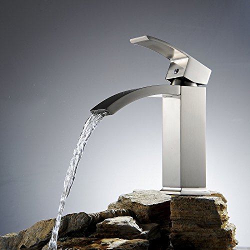 Wovier Brushed Nickel Waterfall Bathroom Sink Faucet,Single Handle Single Hole Vessel Lavatory Faucet,Basin Mixer Tap [並行輸入品]