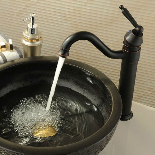 Wovier Oil Rubbed Bronze Waterfall Bathroom Sink Faucet,Single Handle Single Hole Vessel Lavatory Faucet,Basin Mixer Tap Tall Body [並行輸入品]