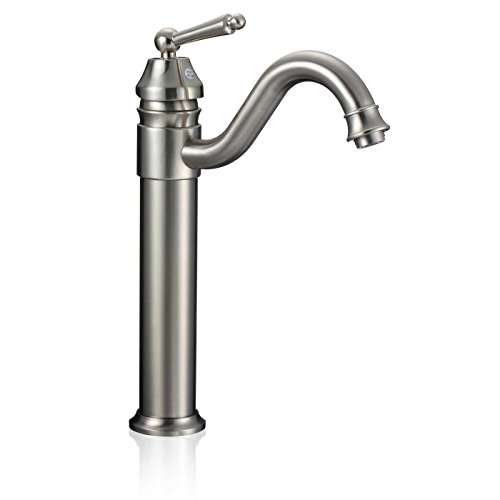 Wovier Brushed Nickel Waterfall Bathroom Sink Faucet,Single Handle Single Hole Vessel Lavatory Faucet,Basin Mixer Tap Tall Body [並行輸入品]