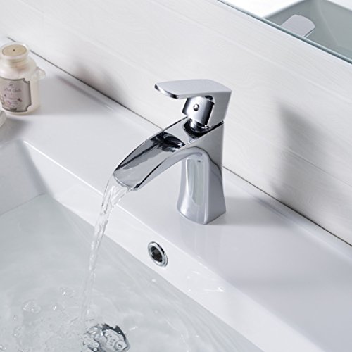 Wovier Chrome Waterfall Bathroom Sink Faucet,Single Handle Single Hole Vessel Lavatory Faucet,Basin Mixer Tap [並行輸入品]
