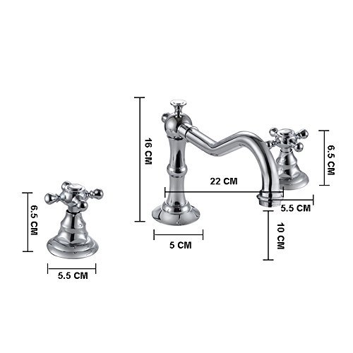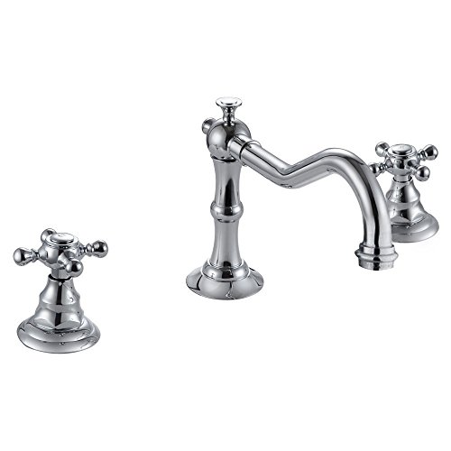 Wovier Chrome Bathroom Sink Faucet,Two Handle Three Hole Vessel Lavatory Faucet,Widespread Basin Mixer Tap [並行輸入品]