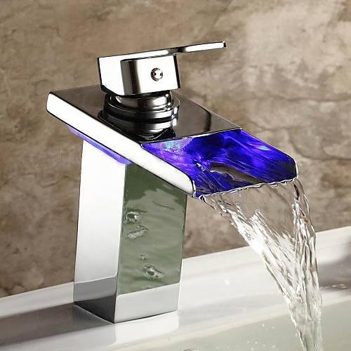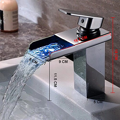 Wovier LEDクローム/つや消しニッケル/ Oil Rubbed Bronzeウォーターフォール浴室排水溝シンク蛇口水フロー、シングルハンドル単穴洗面所蛇口、ミキサータップ 2309