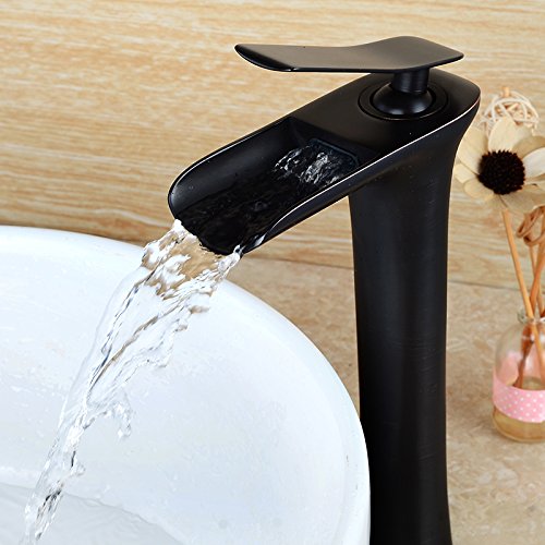 Wovierクロム/つや消しニッケル/ Oil Rubbed Bronzeウォーターフォール浴室排水溝シンク蛇口、シングルハンドル単穴洗面所蛇口、ミキサータップ 8269