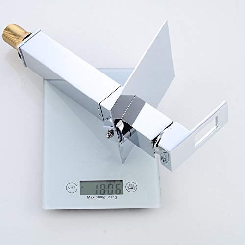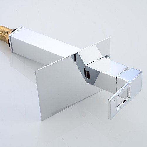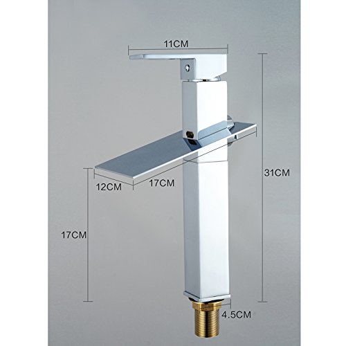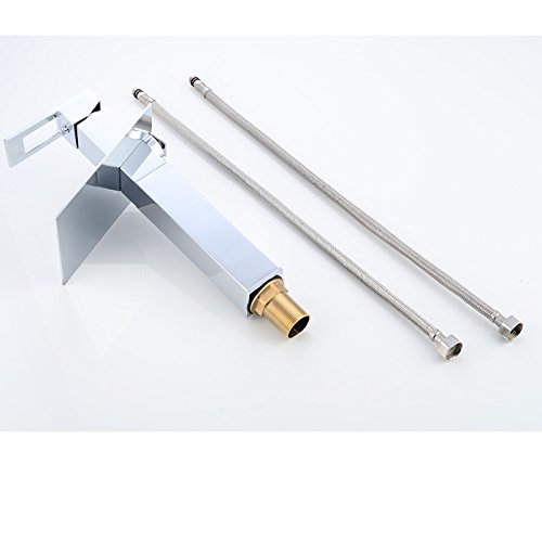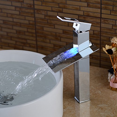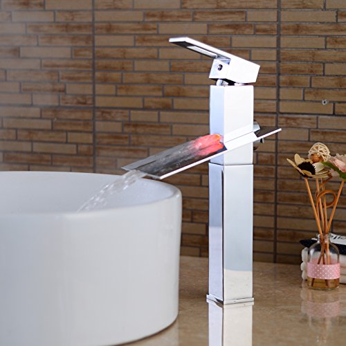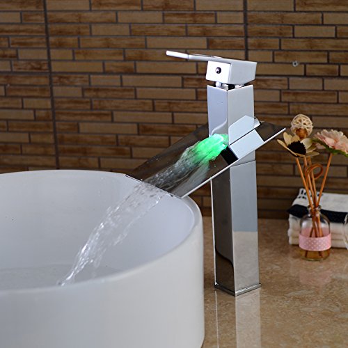 Wovier LED水フロークロムウォーターフォール浴室排水溝シンク蛇口、カラー変更、シングルハンドル単穴洗面所蛇口、ミキサータップTallボディ