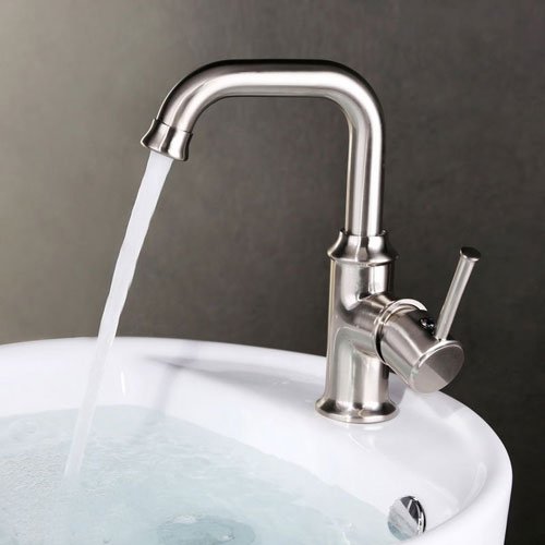 Wovierつや消しニッケルキッチン排水溝シンク蛇口、シングルハンドル単穴洗面所蛇口、ミキサータップ
