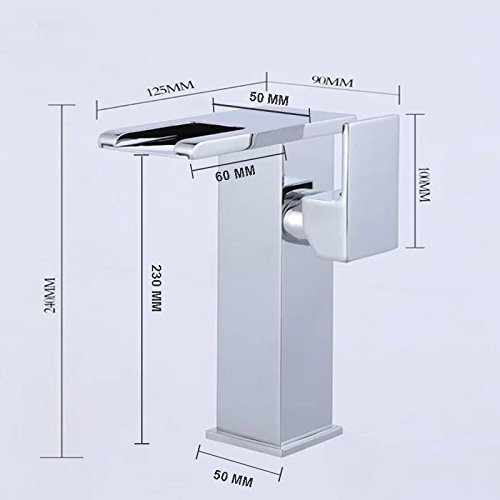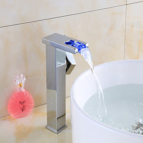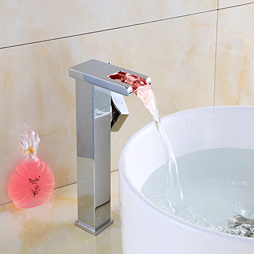 Wovier LED水フロークロムウォーターフォール浴室排水溝シンク蛇口、カラー変更、シングルハンドル単穴洗面所蛇口、ミキサータップTallボディ LED8101