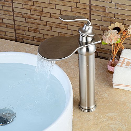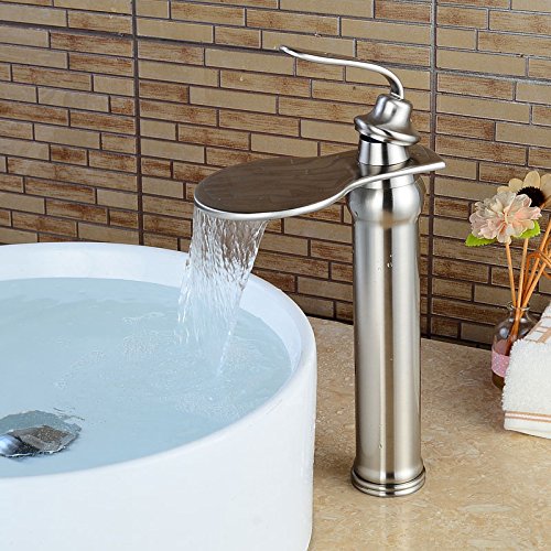 Wovier クロム/つや消しニッケル/オイル磨きブロンズ ウォーターフォールバスルームシンク蛇口 シングルハンドル単穴ベッセル式洗面器蛇口 洗面器ミキサータップトールボディ 2951