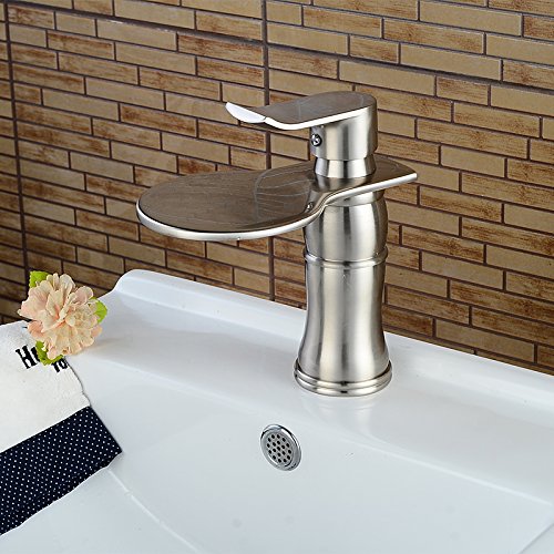 Wovierクロム/つや消しニッケル/オイルはブロンズ/ゴールドウォーターフォール浴室排水溝シンク蛇口、シングルハンドル単穴洗面所蛇口、ミキサータップ 83651