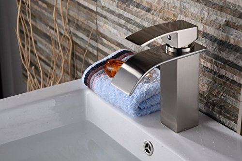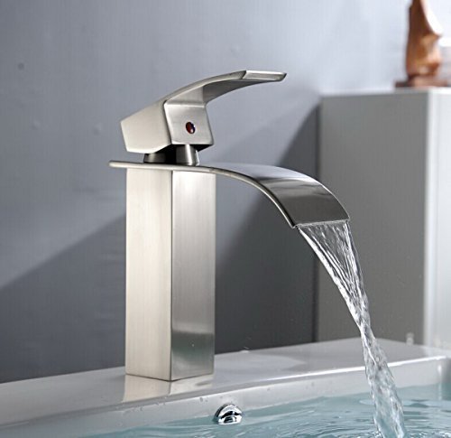 Wovierクロム/つや消しニッケル/ Oil Rubbed Bronzeウォーターフォール浴室排水溝シンク蛇口、シングルハンドル単穴洗面所蛇口、ミキサータップ 82281