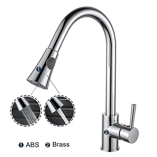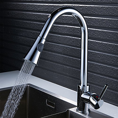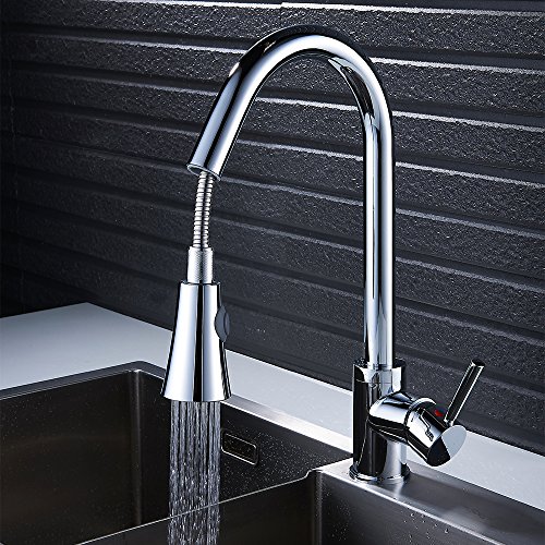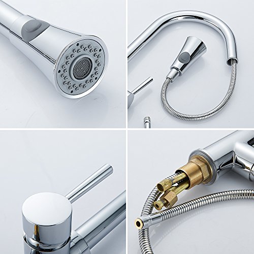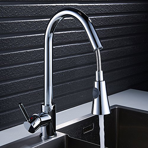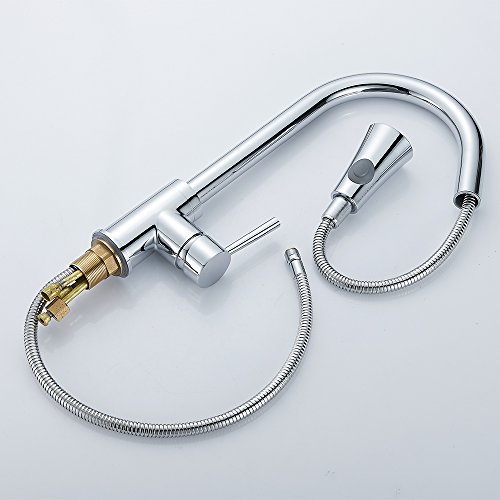 Wrightjp キッチン蛇口 キッチン水栓 シャワー 混合栓 ホース引き出し式 シングルレバー 台付 ハンドシャワー ホース付き 360°引き出せる 引き出しノズル