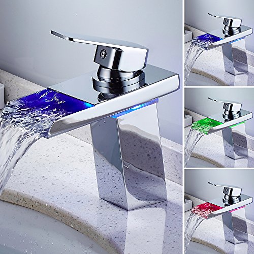 Wrightjp 洗面用水栓 キッチン水栓 3色LEDバス蛇口 洗面用 シングルレバー 混合水栓 蛇口 水栓 洗面台 洗面ボール用 手洗水栓 LED洗面蛇口 水流発電