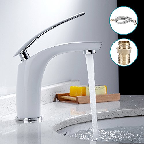 Wrightjp 洗面用水栓 シングルレバー混合水栓 単水栓 シングル混合水栓 キッチン用水栓 台付 オリジナルなデザイン 取り付けホース付き 手洗いボウル用 高品質 耐用 保証期間5年