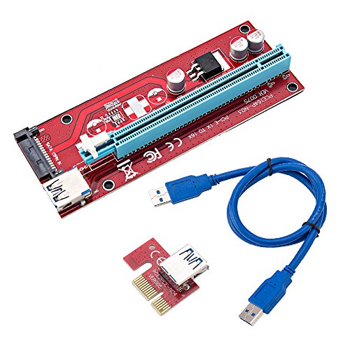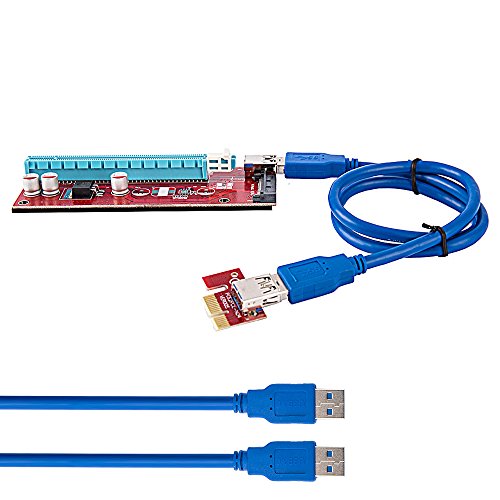 Wrightjp ライザーカード – バージョン007s ExtenderケーブルUSB 3.0コンバータSATA PCI Express PCI - E 1 X to 16 xライザーカードスロットコネクタwith 15pin SATA電源供給ケーブル60 cm for mining by追加 Ship 1 PACK