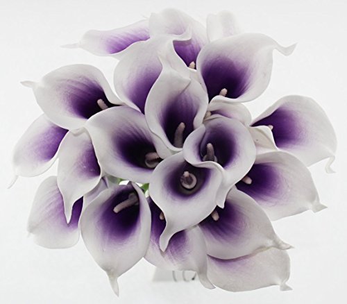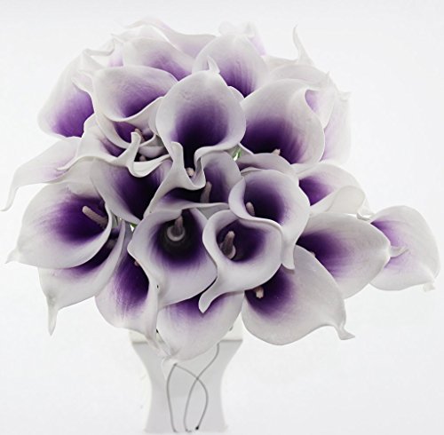 20pcsカラーリリー柄ブライダルウェディングブーケヘッドラテックスリアルタッチフラワーBouquets パープル