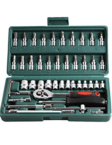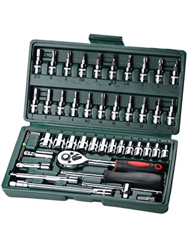 CUKKE ソケットレンチセット 46PCS 修理ハードウェアツール セットケースソケットレンチ 車両家庭用ツール ラチェットスリーブセットツール ハードウェア(グリーン)