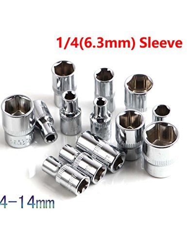 13PCS 1/4"DR.6.3mm6角ソケット(4mm、4.5mm、5mm、5.5mm、6mm、7mm、8mm、9mm、10mm、11mm、12mm、13mm、14mm)