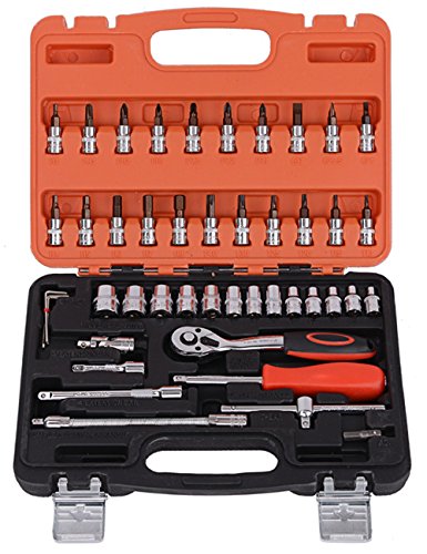CUKKE ソケットレンチセット 46PCS 修理ハードウェアツール セットケースソケットレンチ 車両家庭用ツール ラチェットスリーブセットツール ハードウェア(レッド)