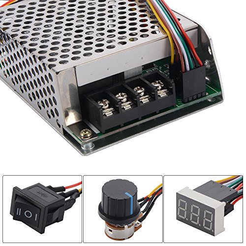 - ユニバーサルDCモータ速度コントローラ。連続電流:40A 最大電流:60A 速度制御:ポテンショメータ(スイッチ付き)速度範囲:0-100%