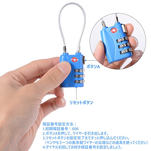 XCSOURCE TSA荷物スーツケース 旅行ケーブルロック 南京錠 3桁 コンビネーションロック ブルー HS205