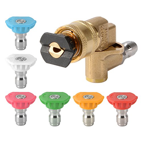 XCSOURCE 1/4" ピボットカップラー 圧力ワッシャー用 + 7×ノズルチップ 3.0 GPM 4000PSI 0/15/25/40/65度 HS1079