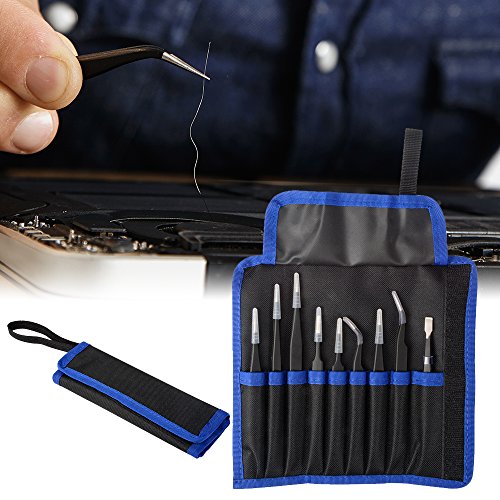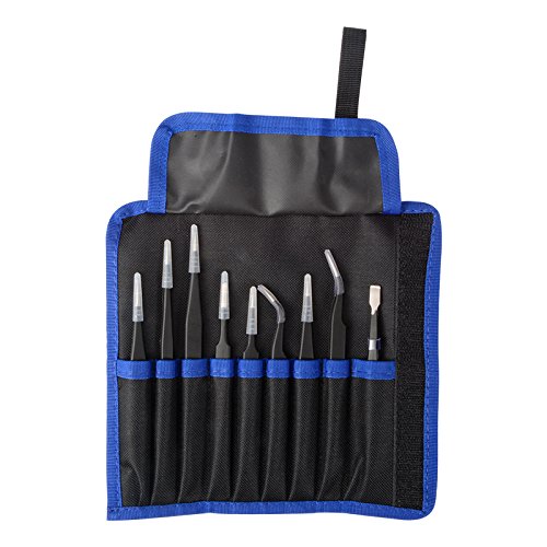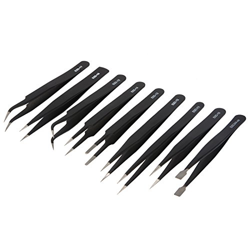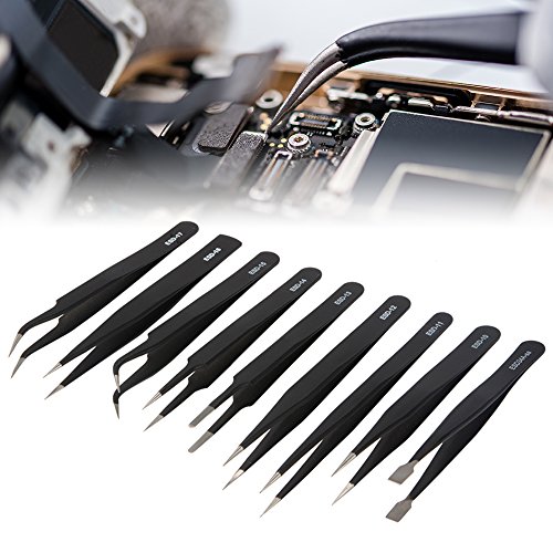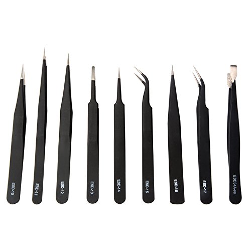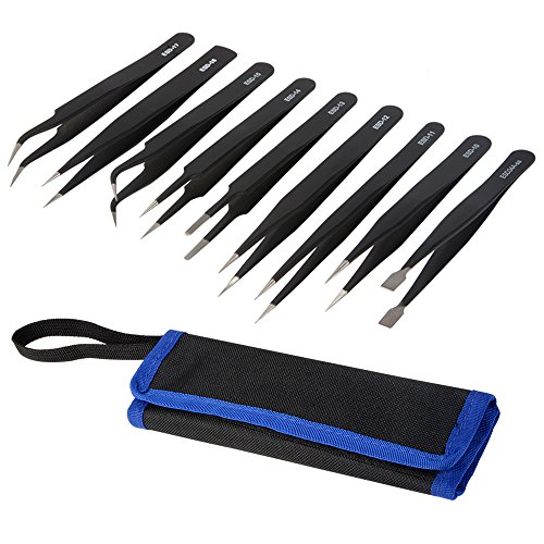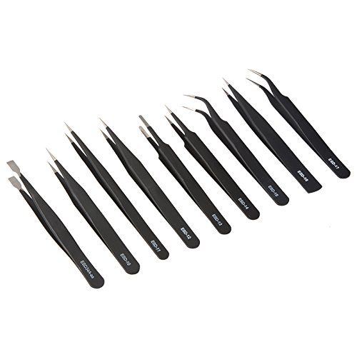 XCSOURCE ステンレス製 ピンセット 精密静ESD 9本セット ツイーザー エクステツイーザー 静電防止 耐磁性 電子部品はんだ付け 収納袋付き HS1017